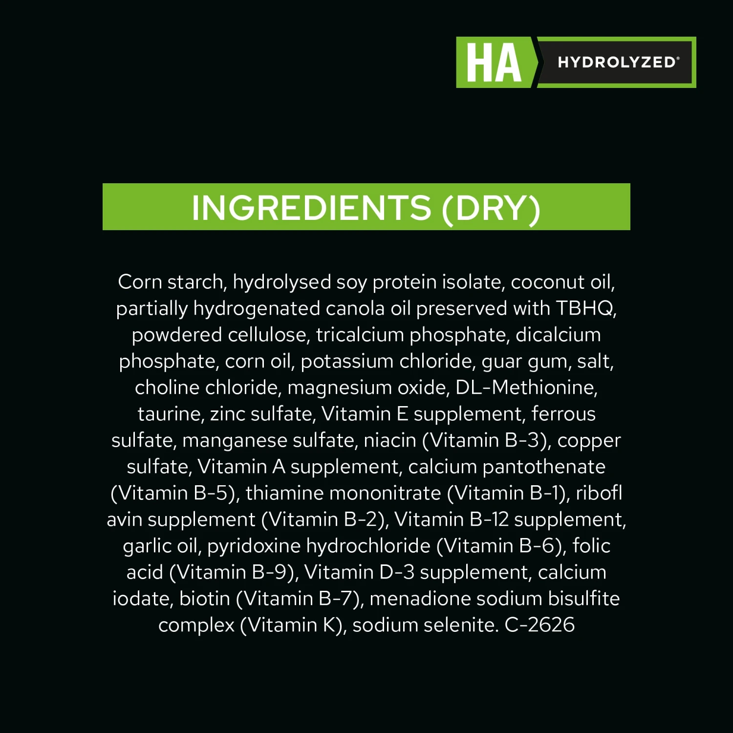 Food sensitivity generally appears as gastrointestinal upset and or, intense itching or scratching. The Pro Plan® Veterinary Diets HA Hydrolyzed Canine Formula contains hydrolysed proteins which are less likely to induce an allergic response, and the low-allergen carbohydrates help minimise the risk of an allergic reaction. HA is formulated to be highly digestible and provide optimal nutrition.