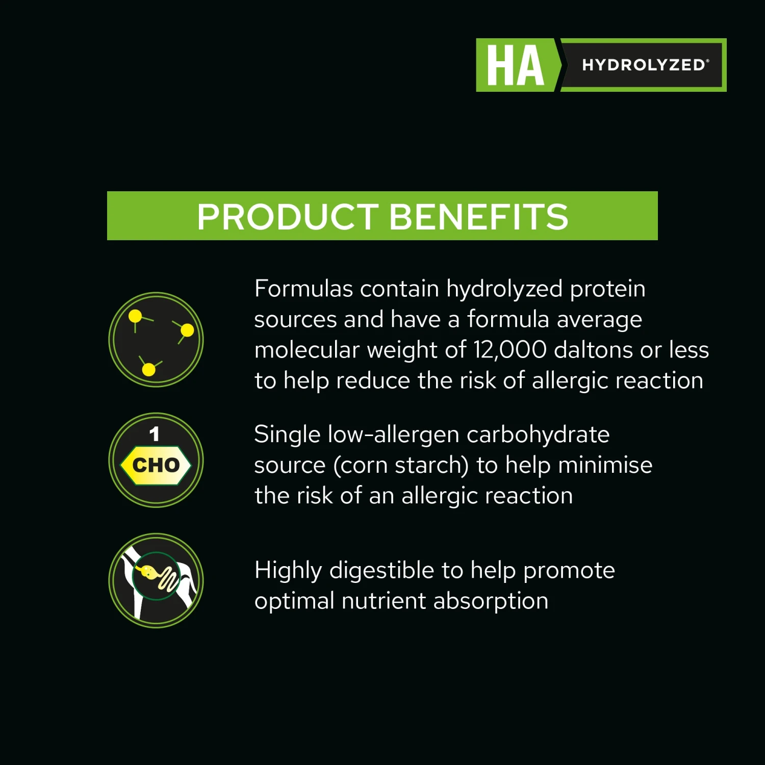- Contains hydrolysed protein sources to help reduce the risk of allergic reaction