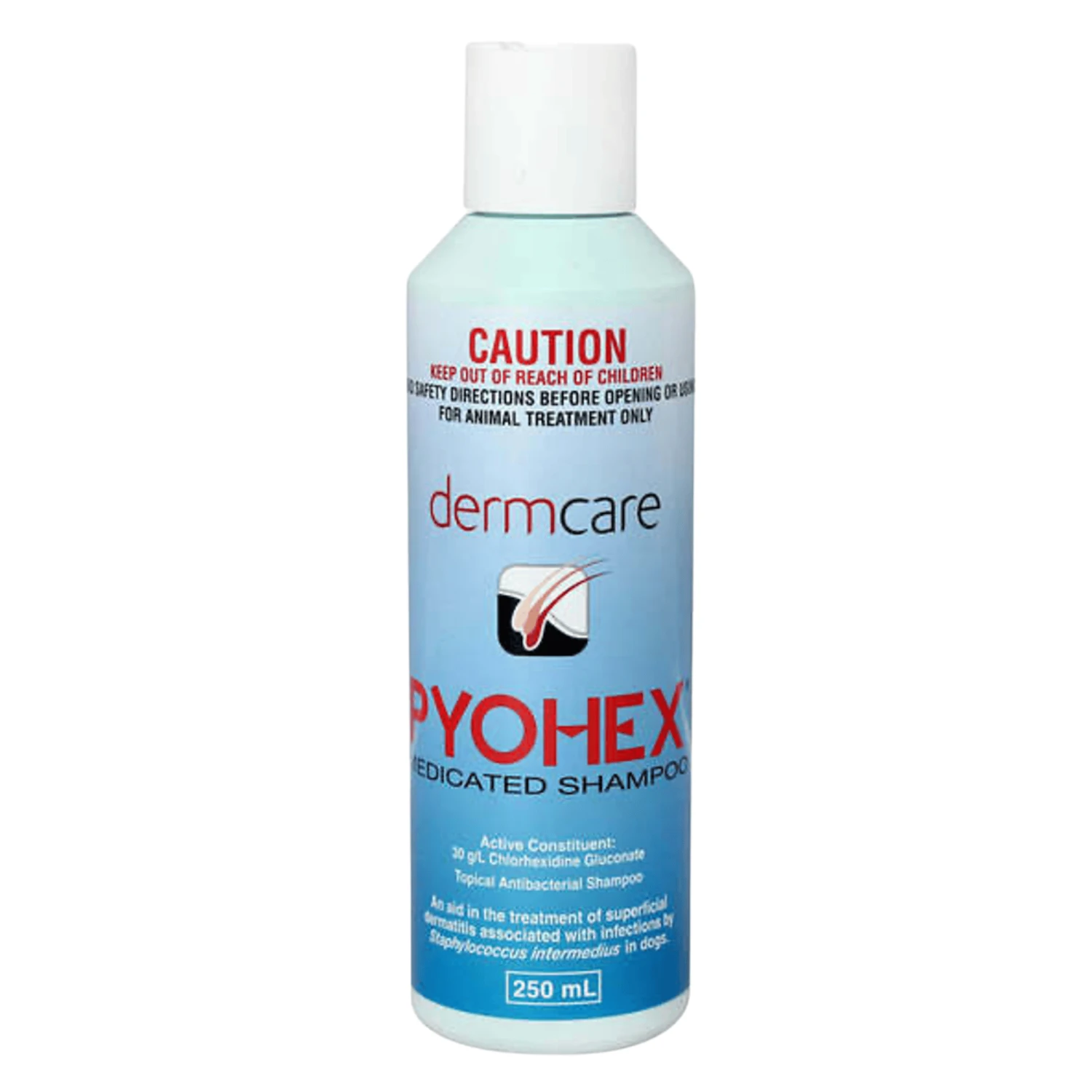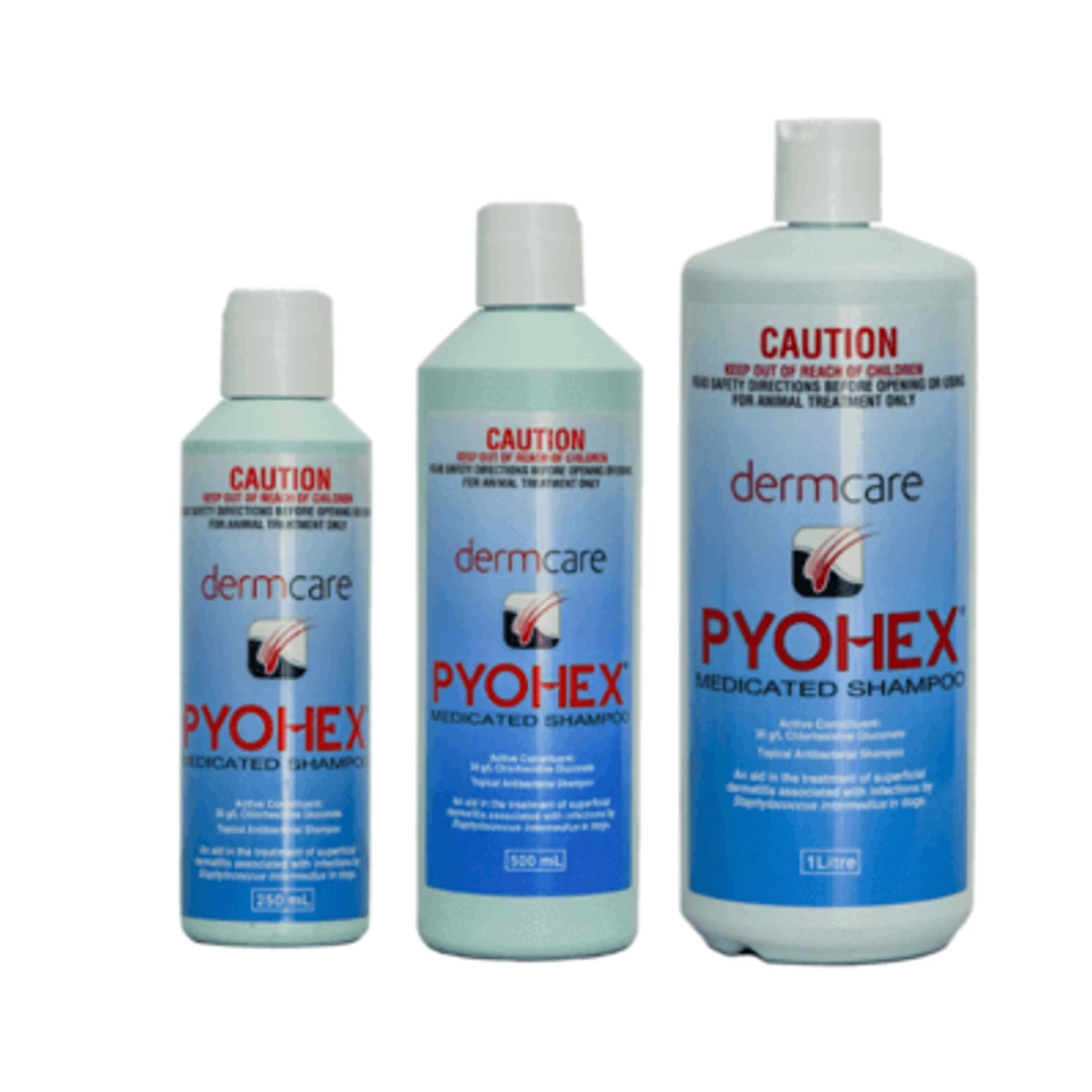 Pyohex Medicated Conditioner is a leave-on medicated, coat conditioning lotion designed to be used in conjunction with Dermcare Pyohex Medicated Shampoo or other appropriate product, as recommended by your veterinarian.
