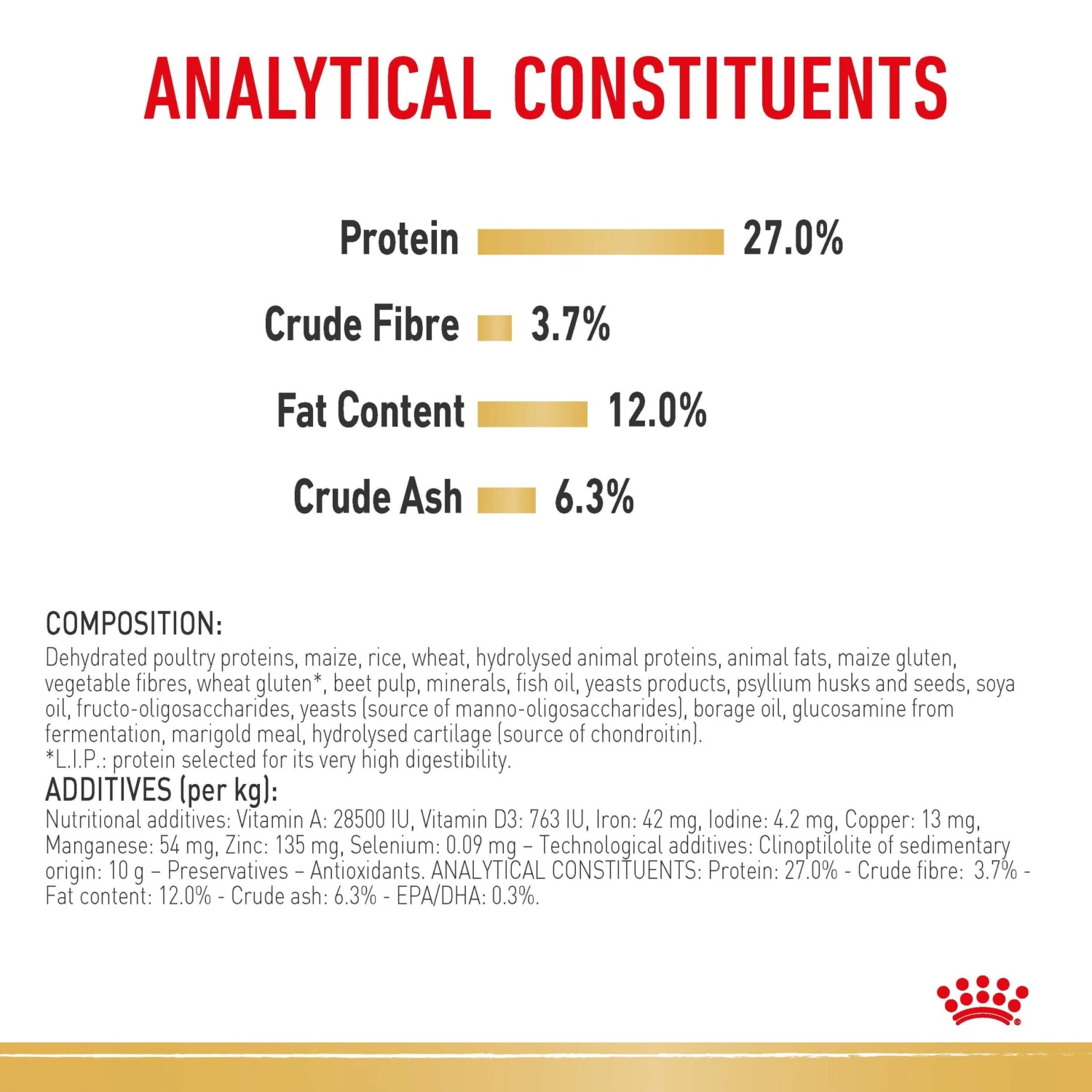 The kibble’s exclusive shape helps reduce the rate of food intake and encourage chewing. This formula also contains a combination of fibres.