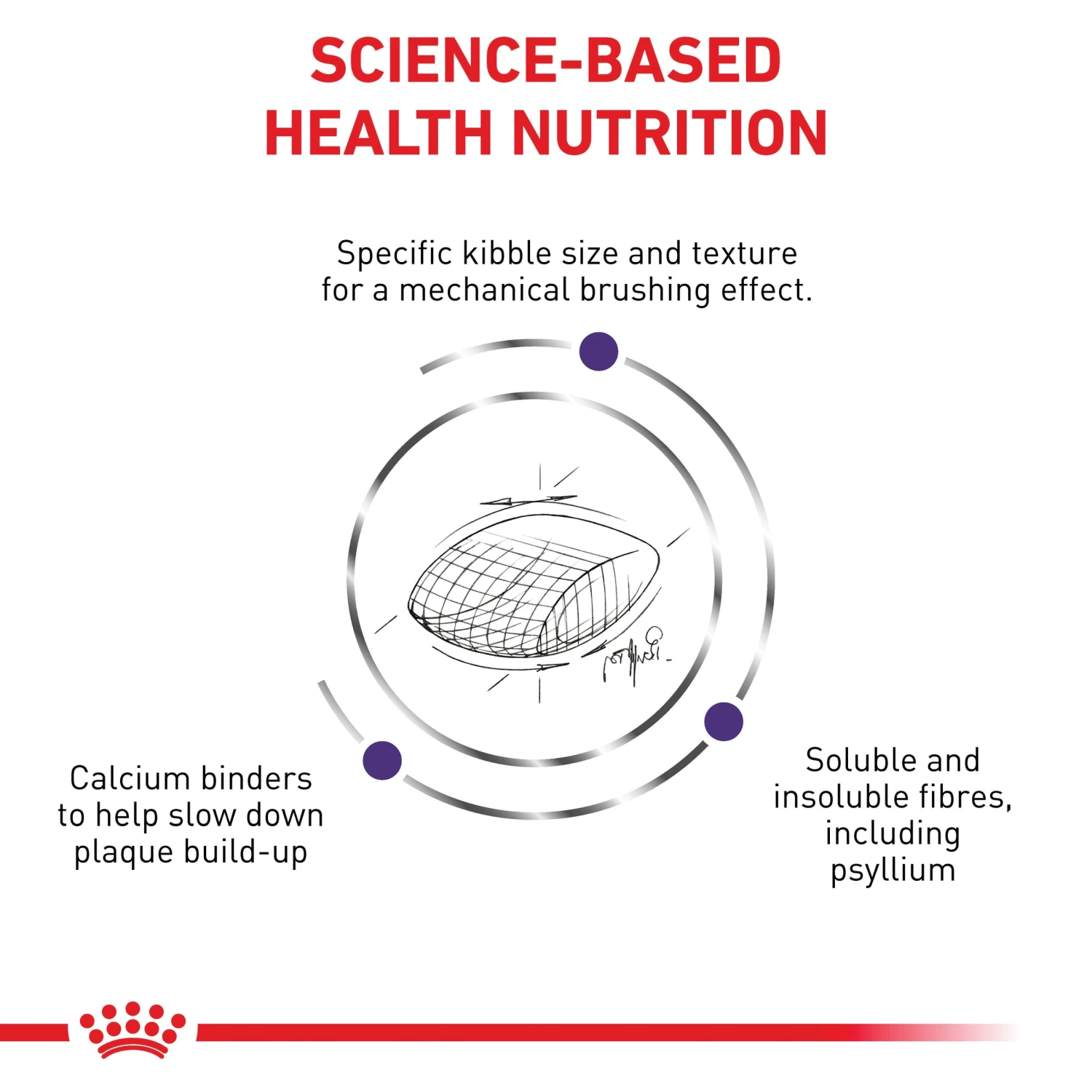 Royal Canin Dental Dry Cat Food is recommended for adult cats requiring daily oral hygeine support.