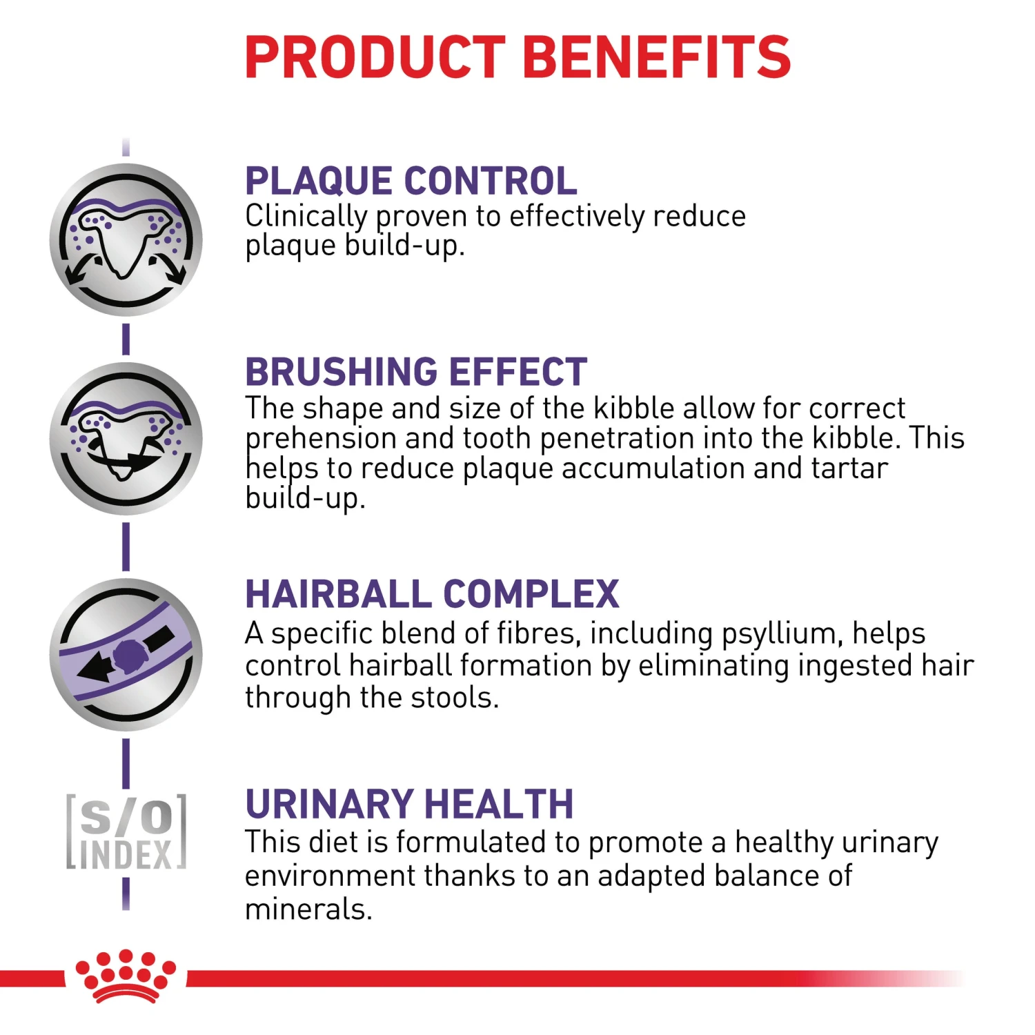 Formulated to limit the development of tartar and dental plaque and reduce associated halitosis. Contains a specific blend of fibres to control hairball formation and help to eliminate ingested hair through the stools.