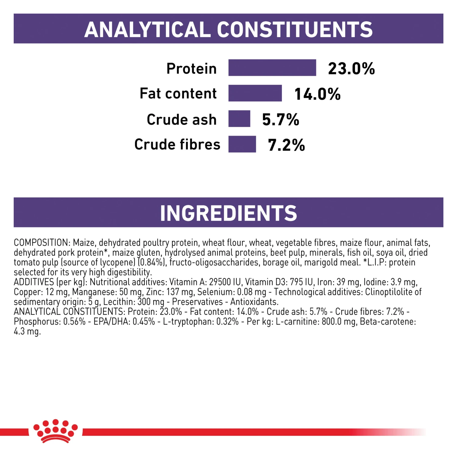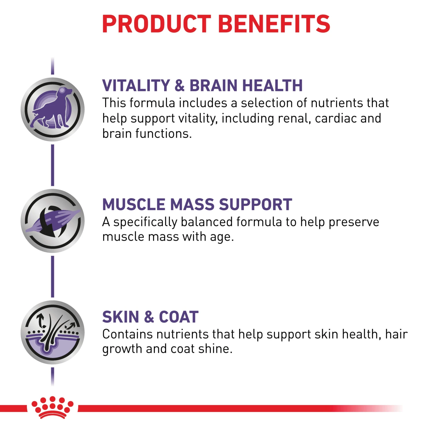 Formulated with a selection of nutriets to help support vitality, including renal, cardiac and brain functions. Containing a specifically balanced formula to help preserve muscle mass with age. Contains nutrients to support skin health, hair growth and coat shine.