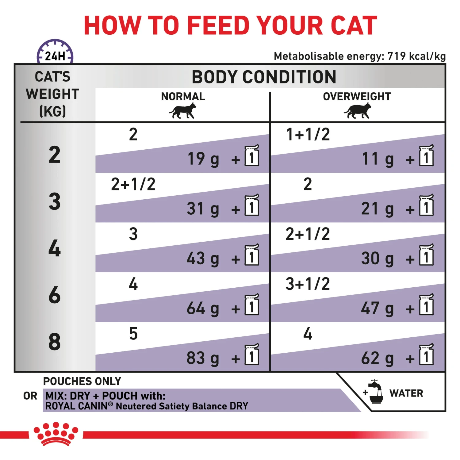 Royal Canin Neutered Weight Balance is recommended for cats from neutering to 7 years old, and cats over 6 months with a tendency to gain weight.