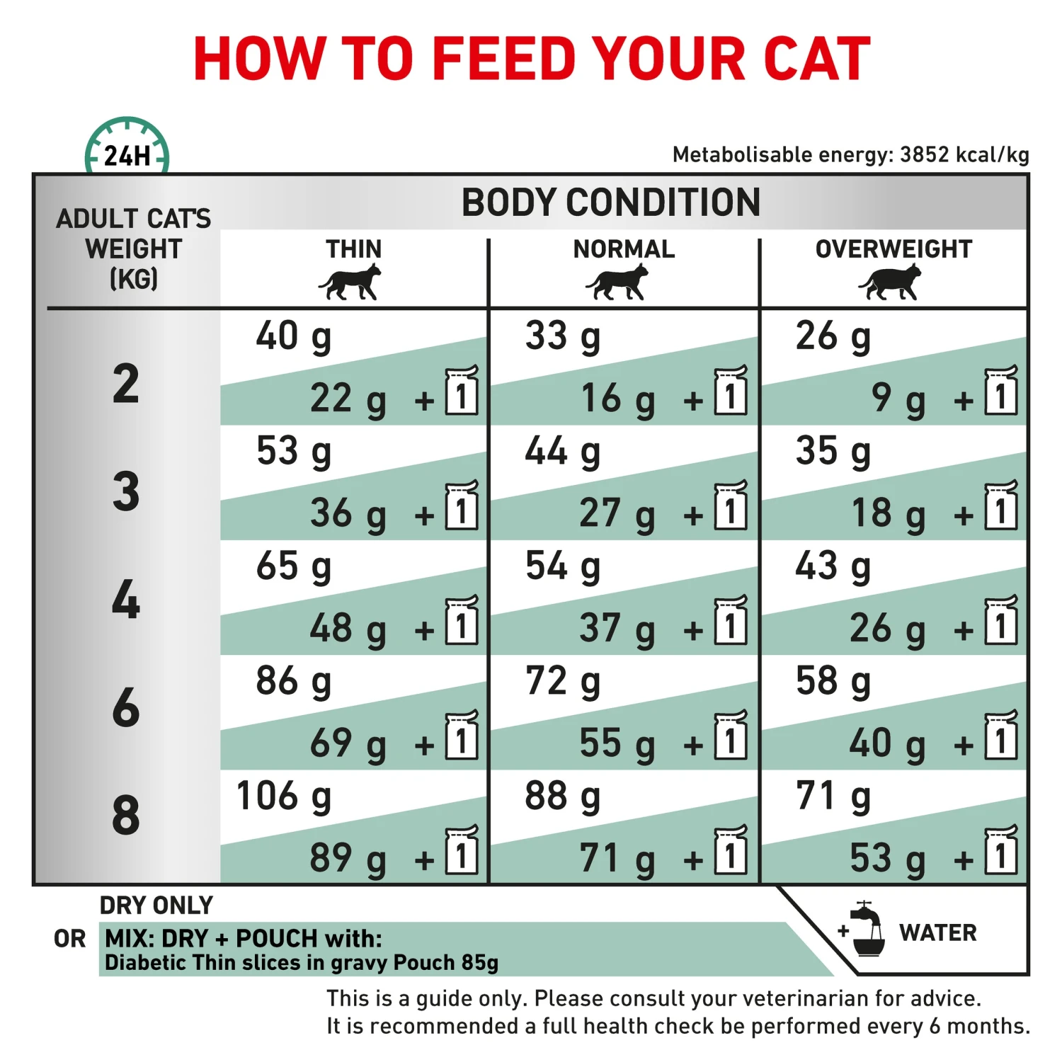 Royal Canin Diabetic diets are specifically formulated to help in the management of glucomodulation in diabetic cats.