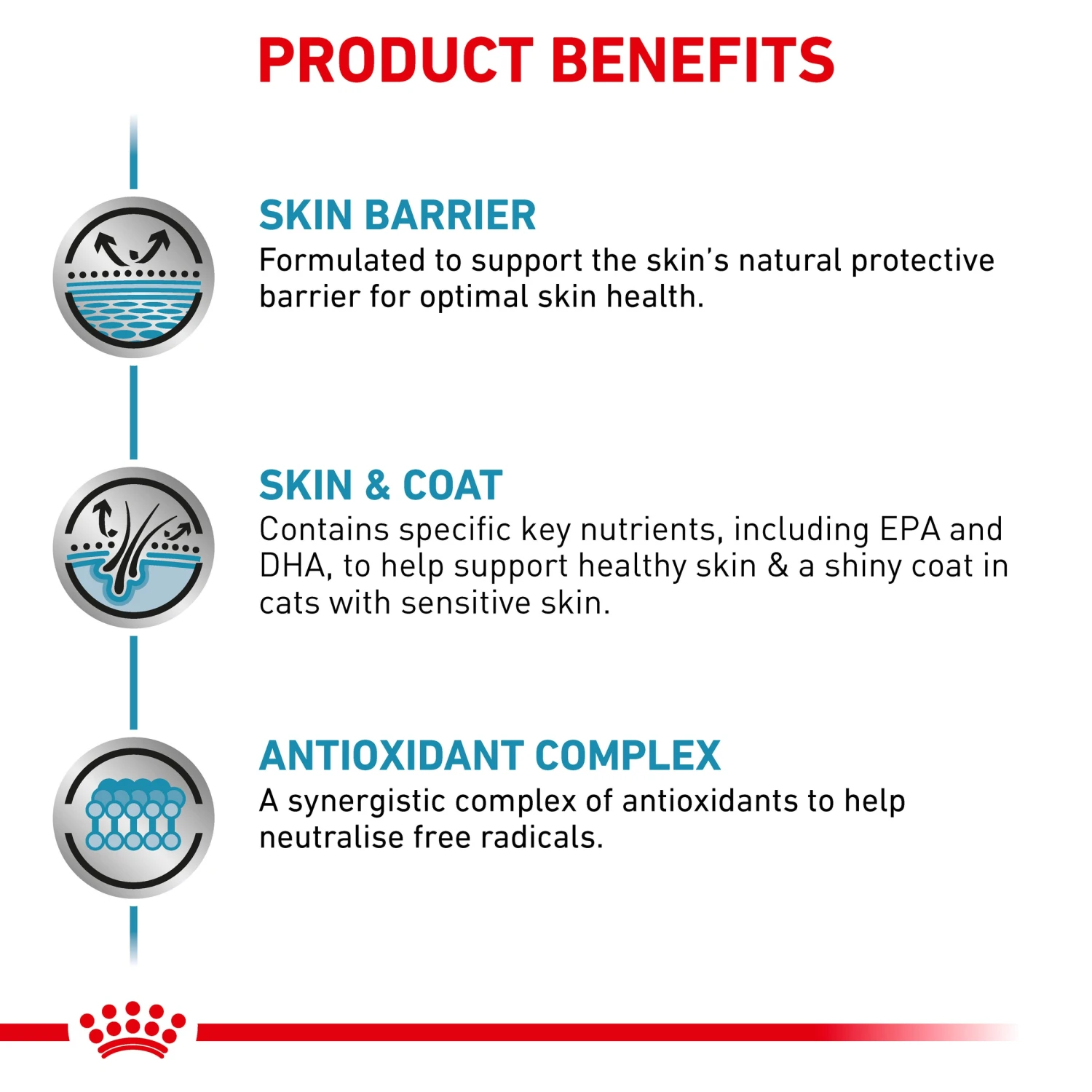 Contains specific key nutrients, including EPA and DHA, to help support healthy skin & a shiny coat in cats with sensitive skin.