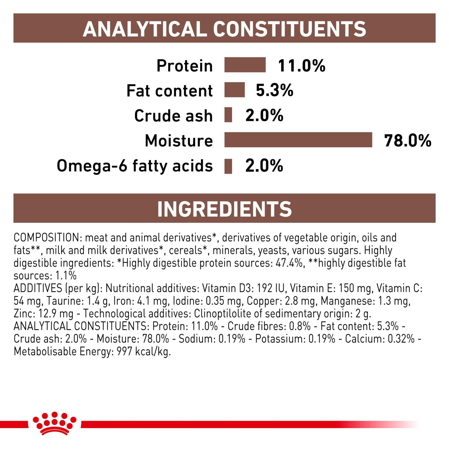 Royal Canin® Gastrointestinal Kitten ultra soft mousse is a complete diet for kittens, from 6 weeks old, formulated to help support gastrointestinal disorders, including weaning diarrhoea, in growing pets. To meet the needs of growing pets, this diet is a high energy formula with an adapted level of nutrients, including protein and calcium. This diet contains highly digestible ingredients and an adapted level of electrolytes plus a synergistic complex including vitamin E, vitamin C and taurine to support a kitten’s natural defences.