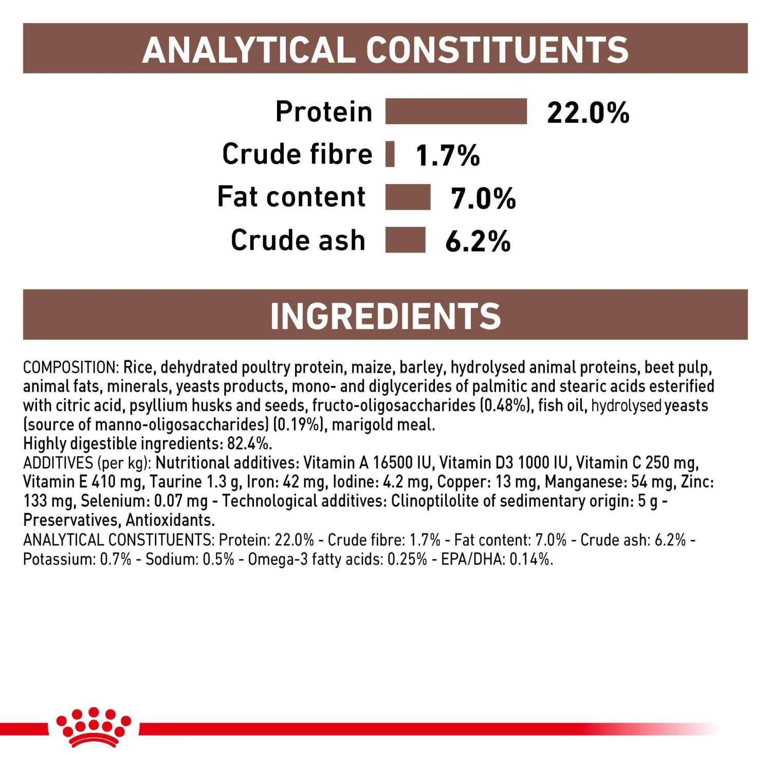 A highly digestible formula with balanced fibres, including prebiotics, to support healthy digestion and transit.