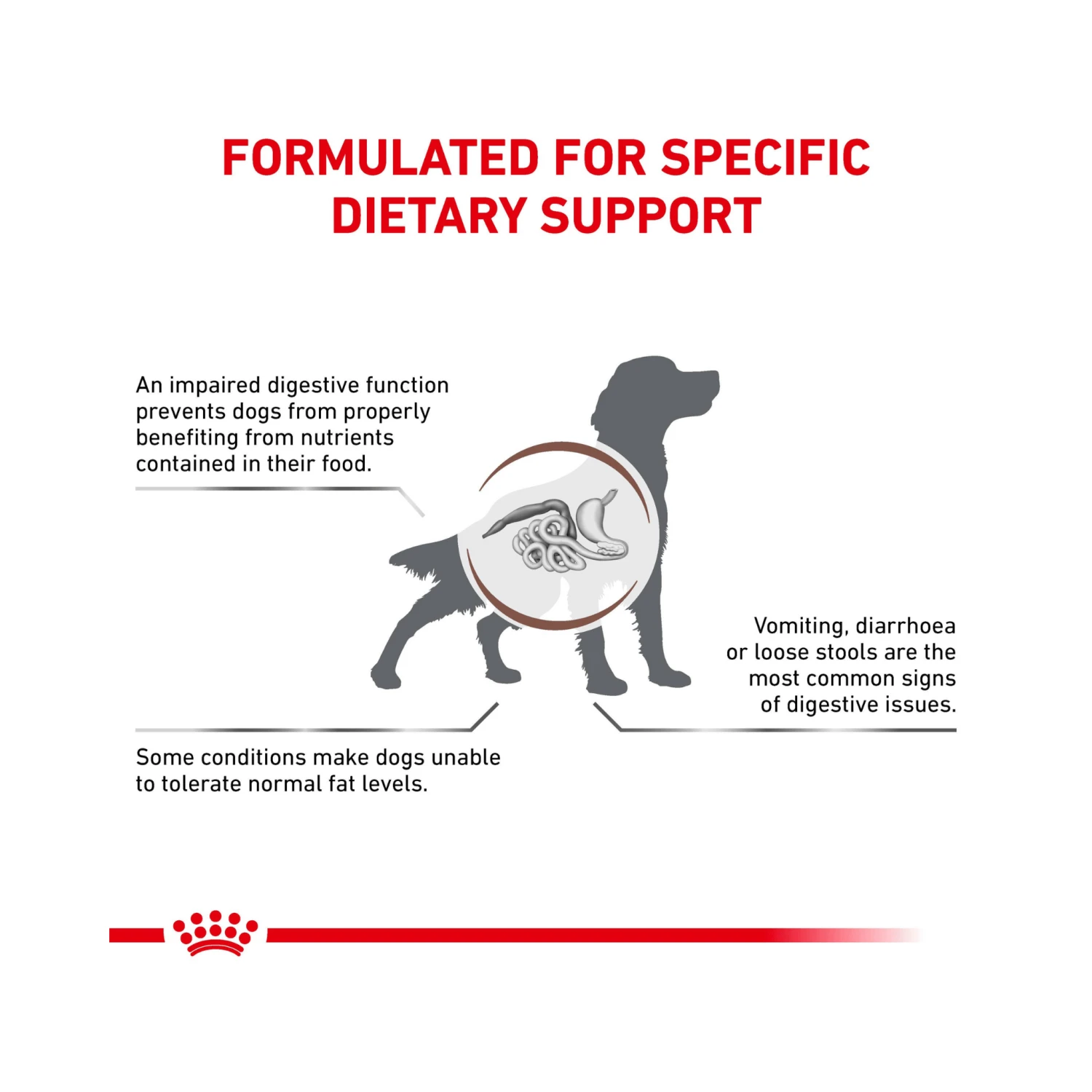 For the nutritional management of dogs needing a fat-restricted diet.