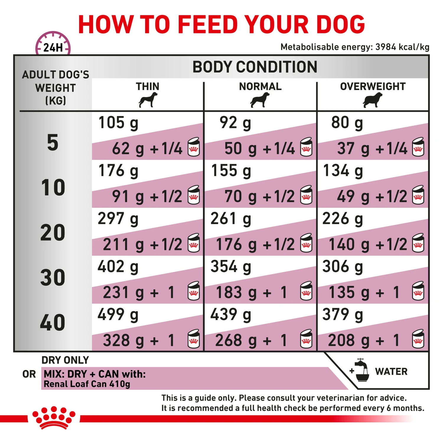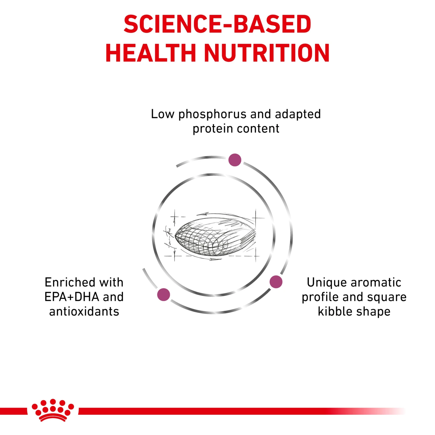 Royal Canin Renal Dry is a complete dietetic feed for dogs formulated to support renal function in the case of chronic renal insufficiency, through its restricted levels of phosphorus and high-quality proteins.