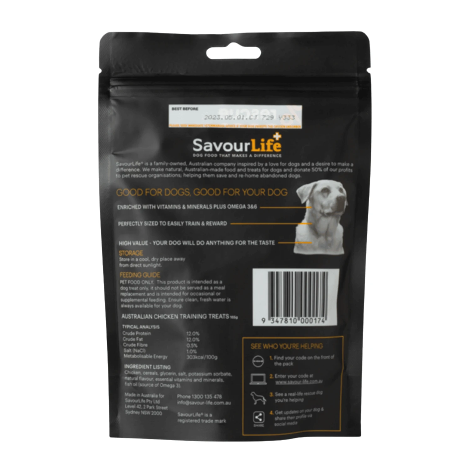 SavourLife’s Australian Training Treat Range are delicious, bite-size, meaty chunks; perfect for training and rewarding (and great as toy stuffers too!). Based on our popular Strips Range recipes we make them right here in Australia, from ingredients including real Australian meat, and they contain no artificial colour or flavours. Great to have on hand when you are walking, playing or having fun! We have done the hard work for you!