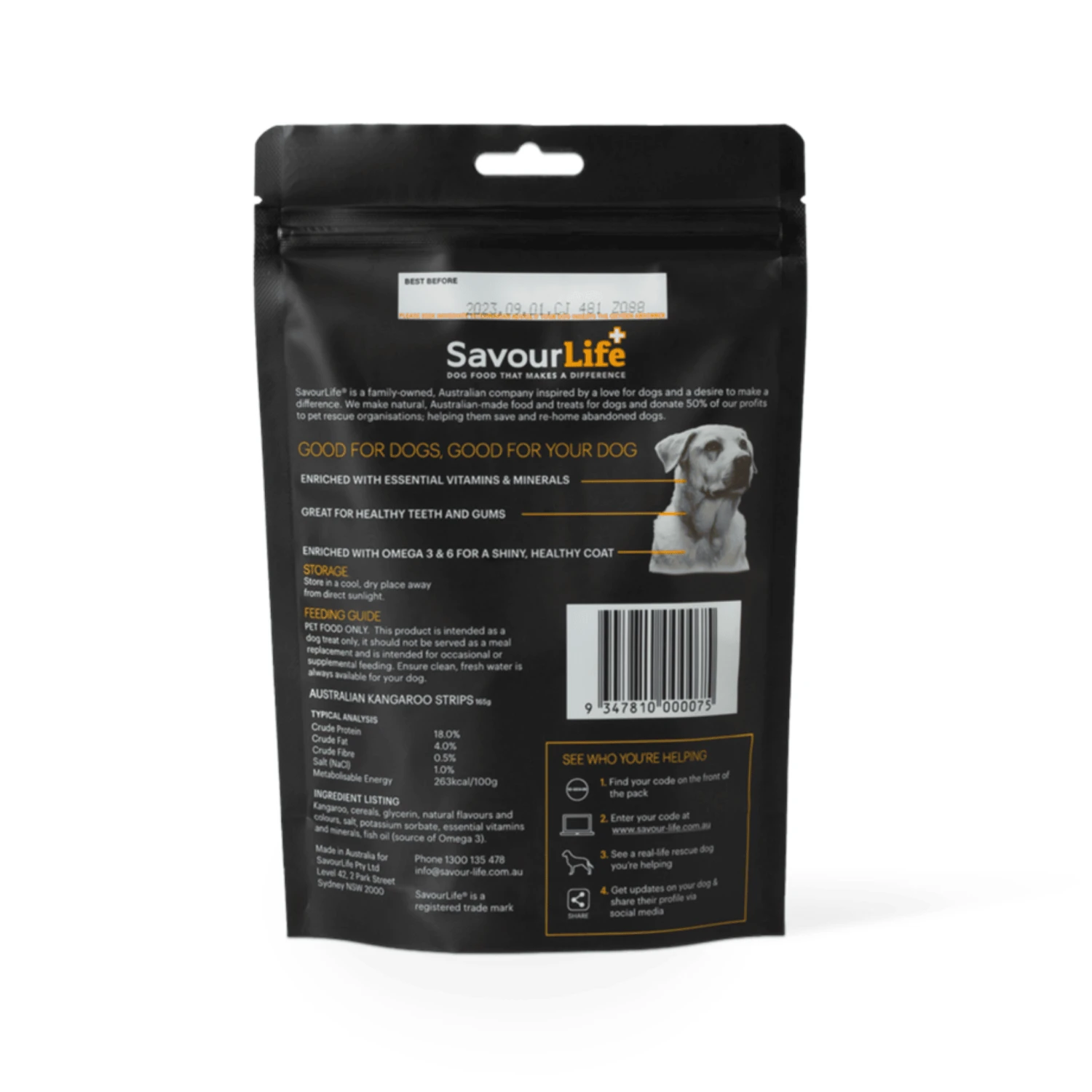 SavourLife’s delicious Australian Kangaroo Strips contain no artificial flavours or colours and are made from real Australian meat. They are enriched with essential vitamins and minerals for better health and the addition of fish oil gives a natural boost of vital Omega 3 & 6 which is perfect for a shiny, healthy coat.