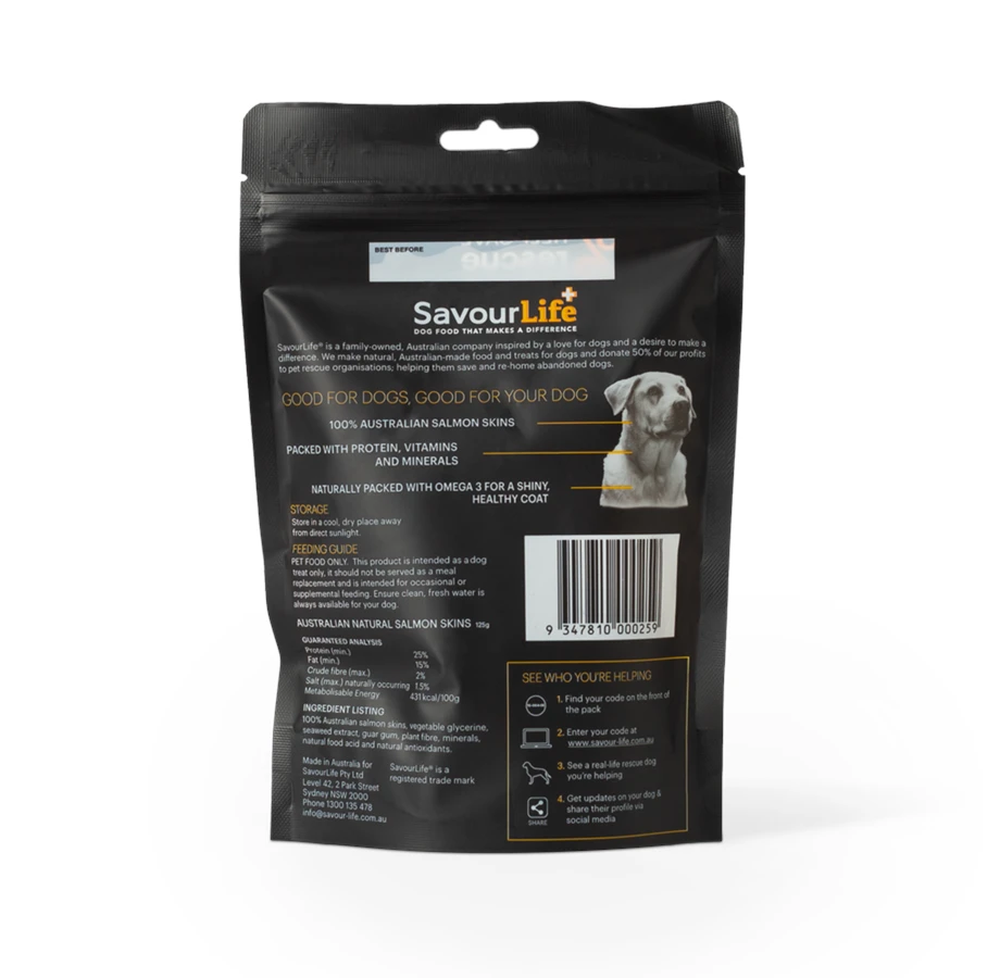 SavourLife’s Australian Salmon Skins are full of protein, vitamins and minerals and are made from 100% Australian salmon skins. Their crunchy texture and awesome taste are a naturally healthy way of getting all the goodness of Omega 3 for a shiny, healthy coat. 100% all-natural goodness!