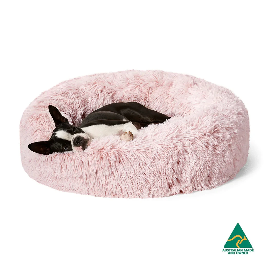 Our Cuddler in luxurious pale pink Bliss is the perfect bed to calm and relax your pet. Super soft long pile vegan faux fur paired with soft raised walls and a deep sleeping area provide the ultimate retreat for anxious pets and those that relish the feeling of safety and security. The Bliss Cuddler invites hours of delicious snoozing and is fully machine washable (even the filling!).