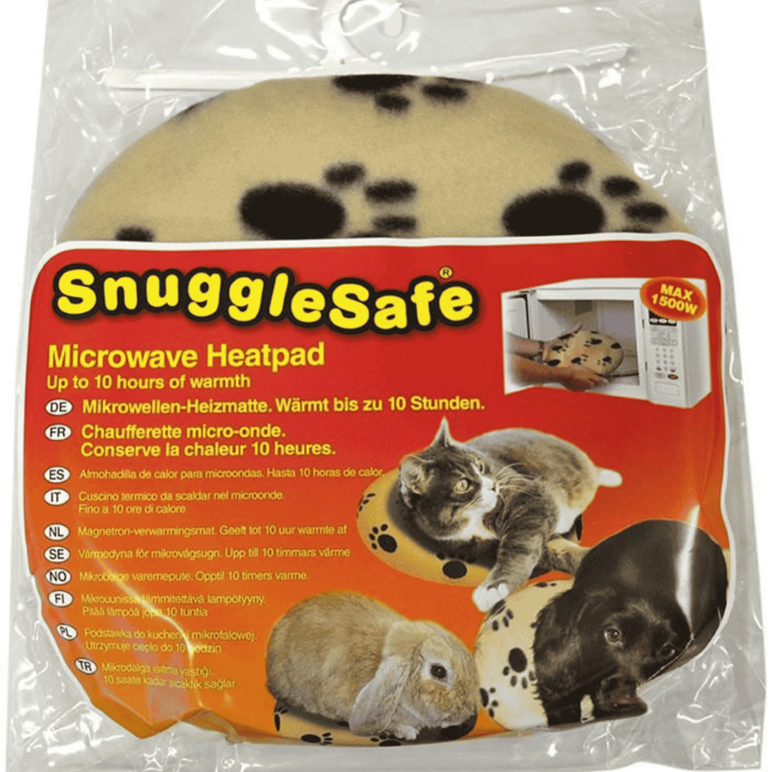 The SnuggleSafe Microwave Heating Pad is a simple, safe way to provide your cat, dog or small pet with comforting warmth. After only minutes in your microwave, the SnuggleSafe pad will provide your cherished companion with up to 10 hours of warmth and comfort. The heating pad is bite resistant, has no wires for a pet to chew through and is totally non toxic.