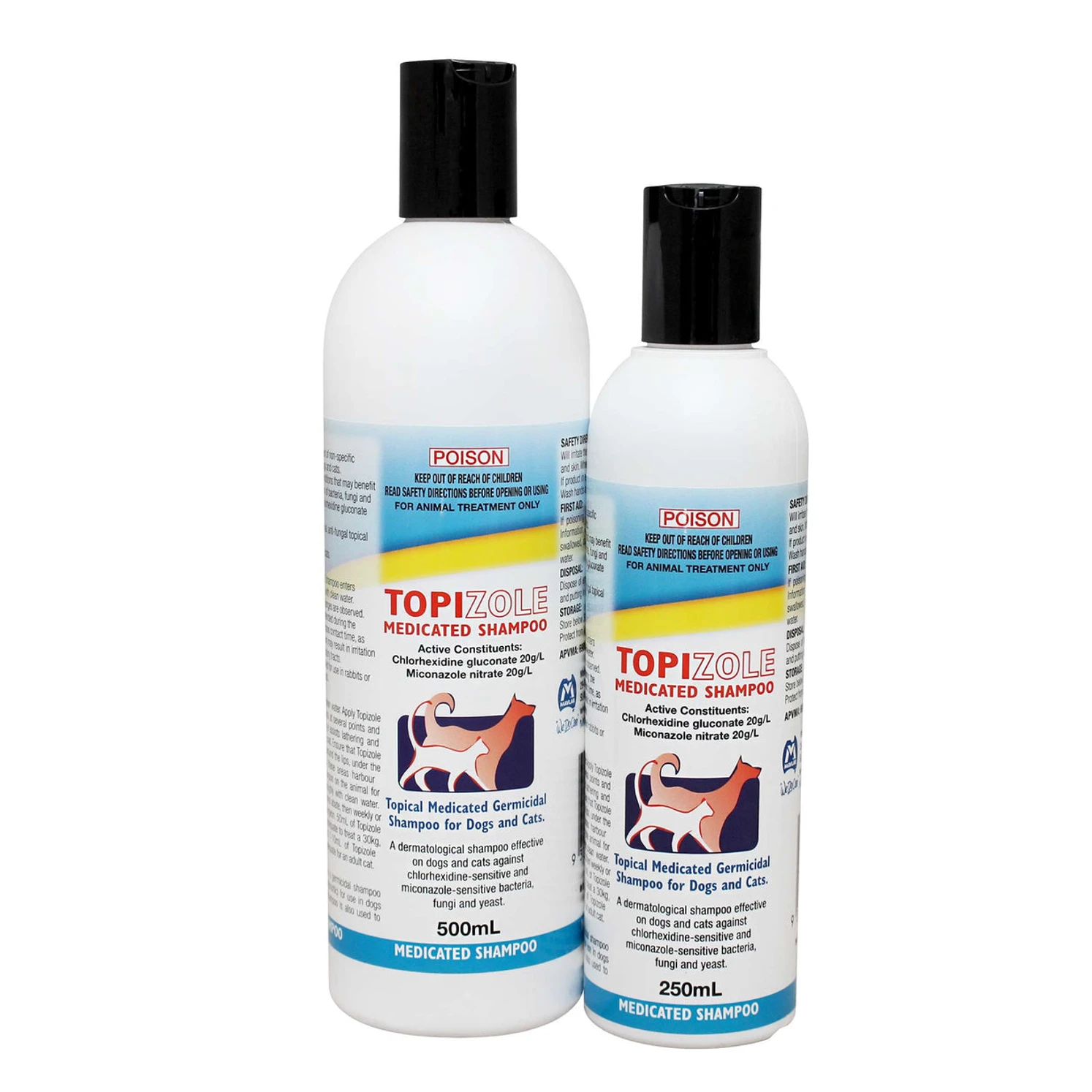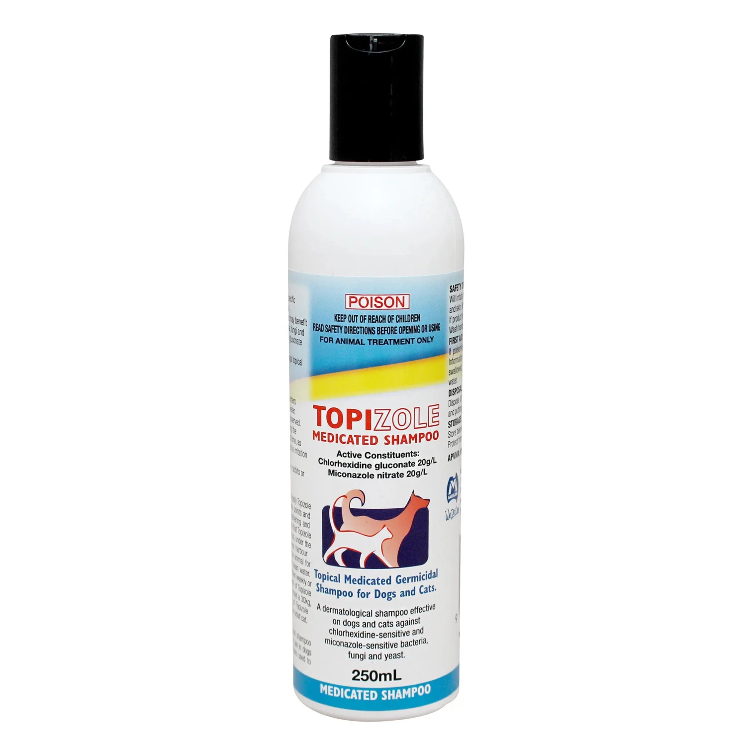 Both dogs and cats can use Topizole Medicated Shampoo.