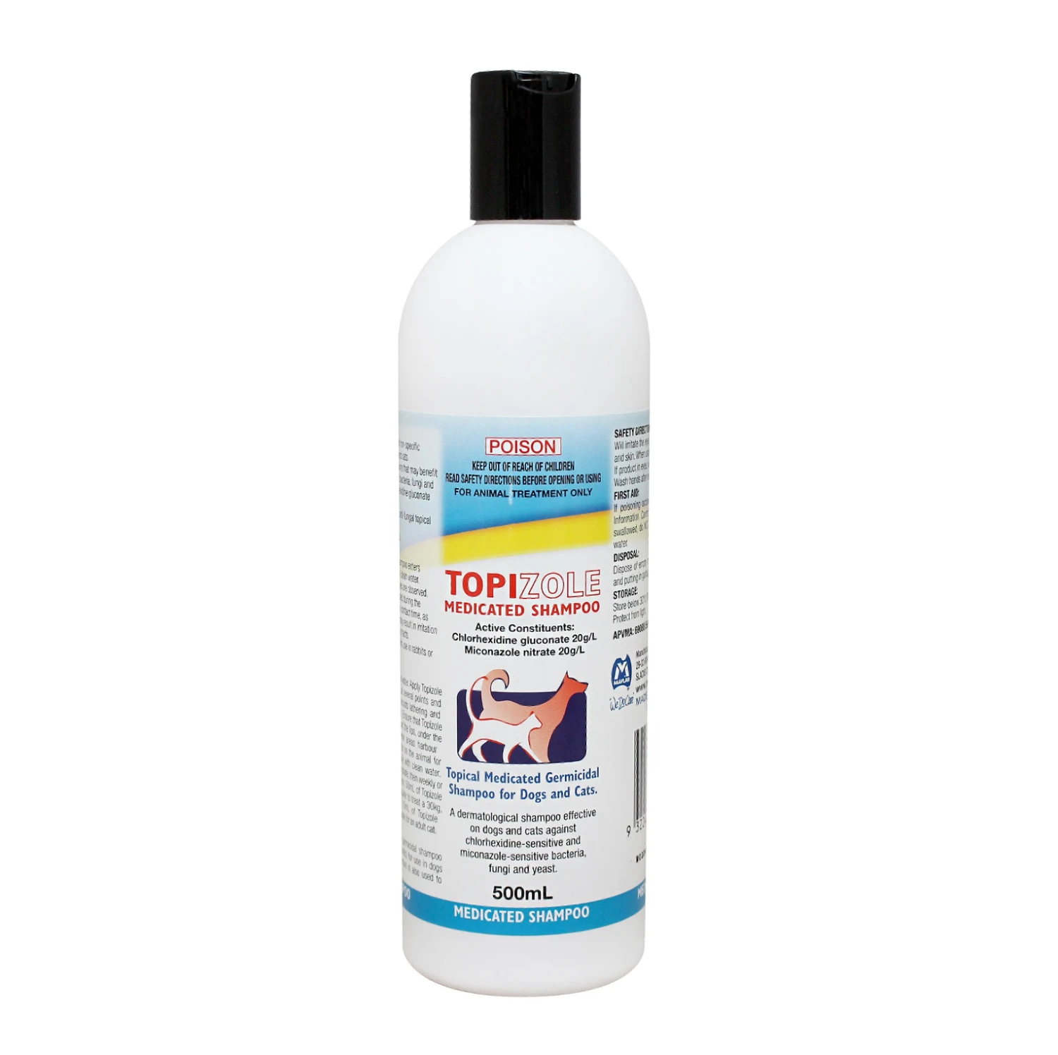 Topizole Medicated Shampoo is used to help treat general dermatological disorders in cats and dogs. It’s uses include: