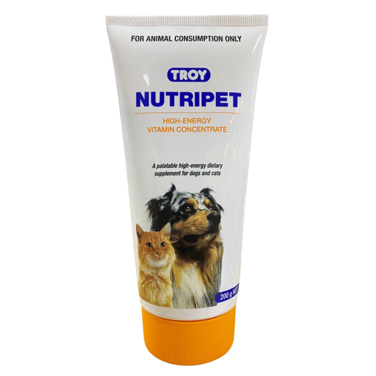 Troy Nutripet is a high energy vitamin concentrate, in a palatable gel. It may be included in the diets of dogs and cats when vitamin or energy levels are low.