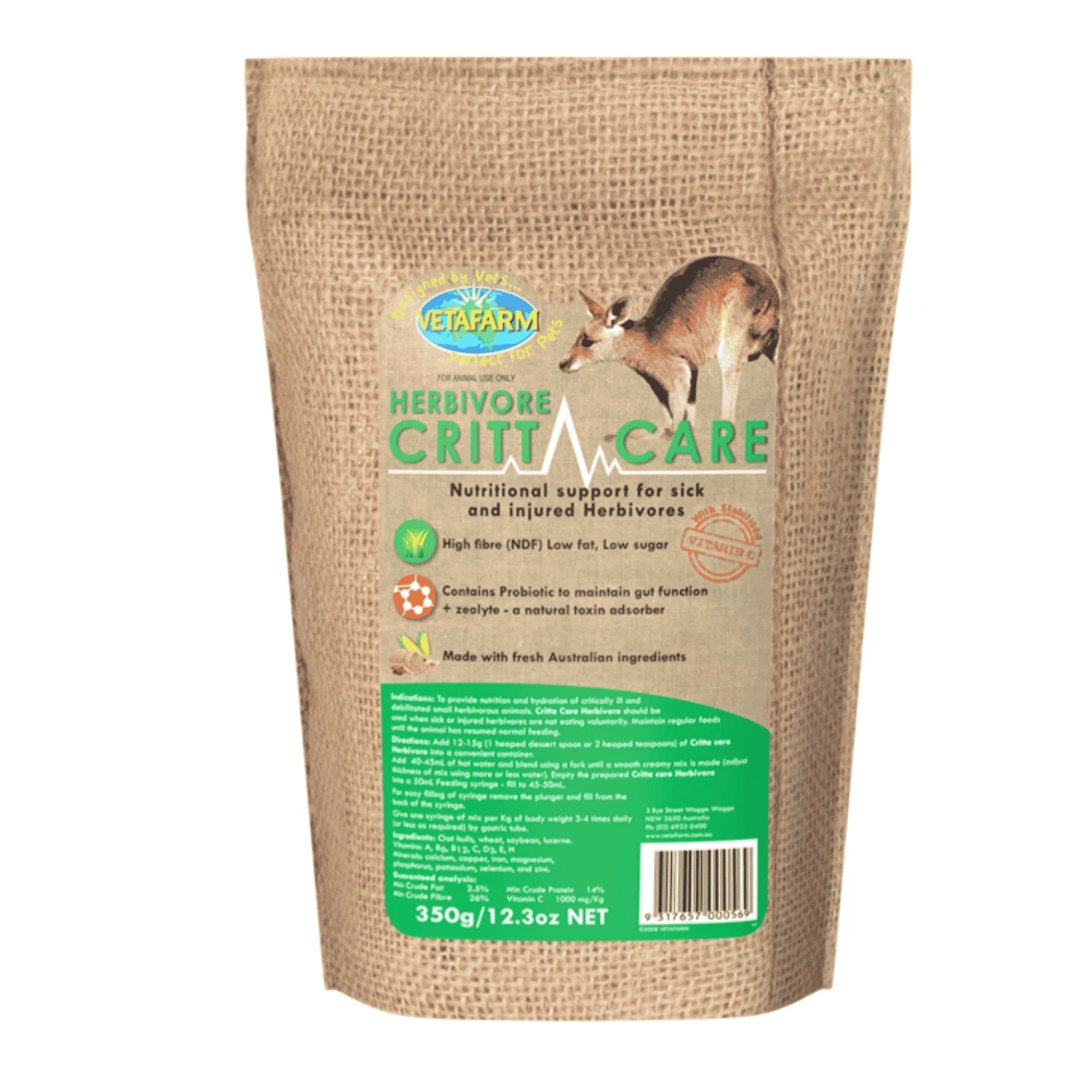 Sick, stressed and injured herbivores (such as Cavies, Kangaroos, Wombats, Possums, Wallabies, Quokkas and Rabbits) require exceptional nutritional care to help with recovery.