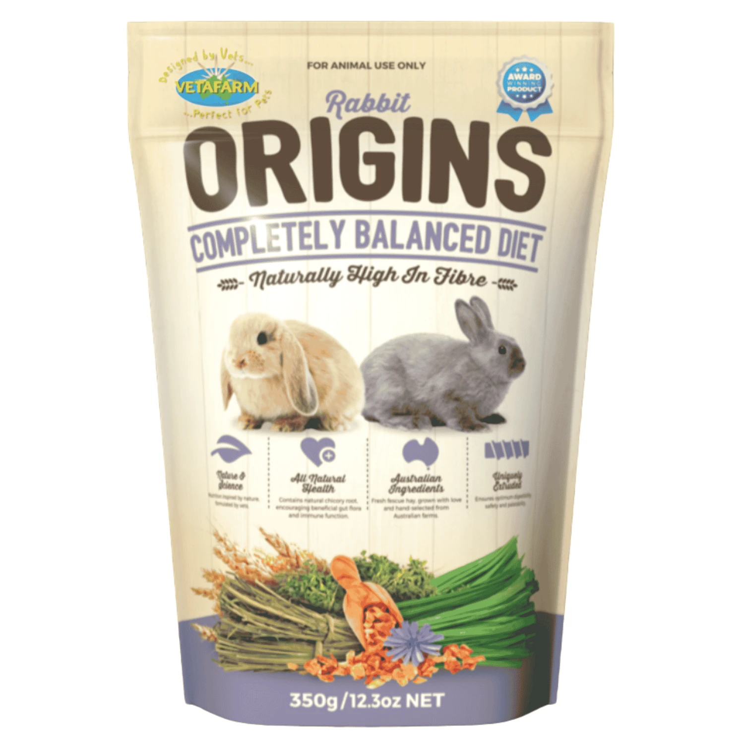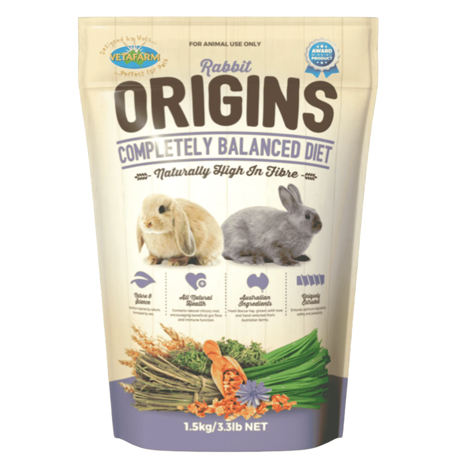 Rabbit Origins was formulated by veterinarians as a completely balanced diet for pet Rabbits when fed at a ratio of 75% High fibre hay, 20% pellets & 5% treats and fresh foods.