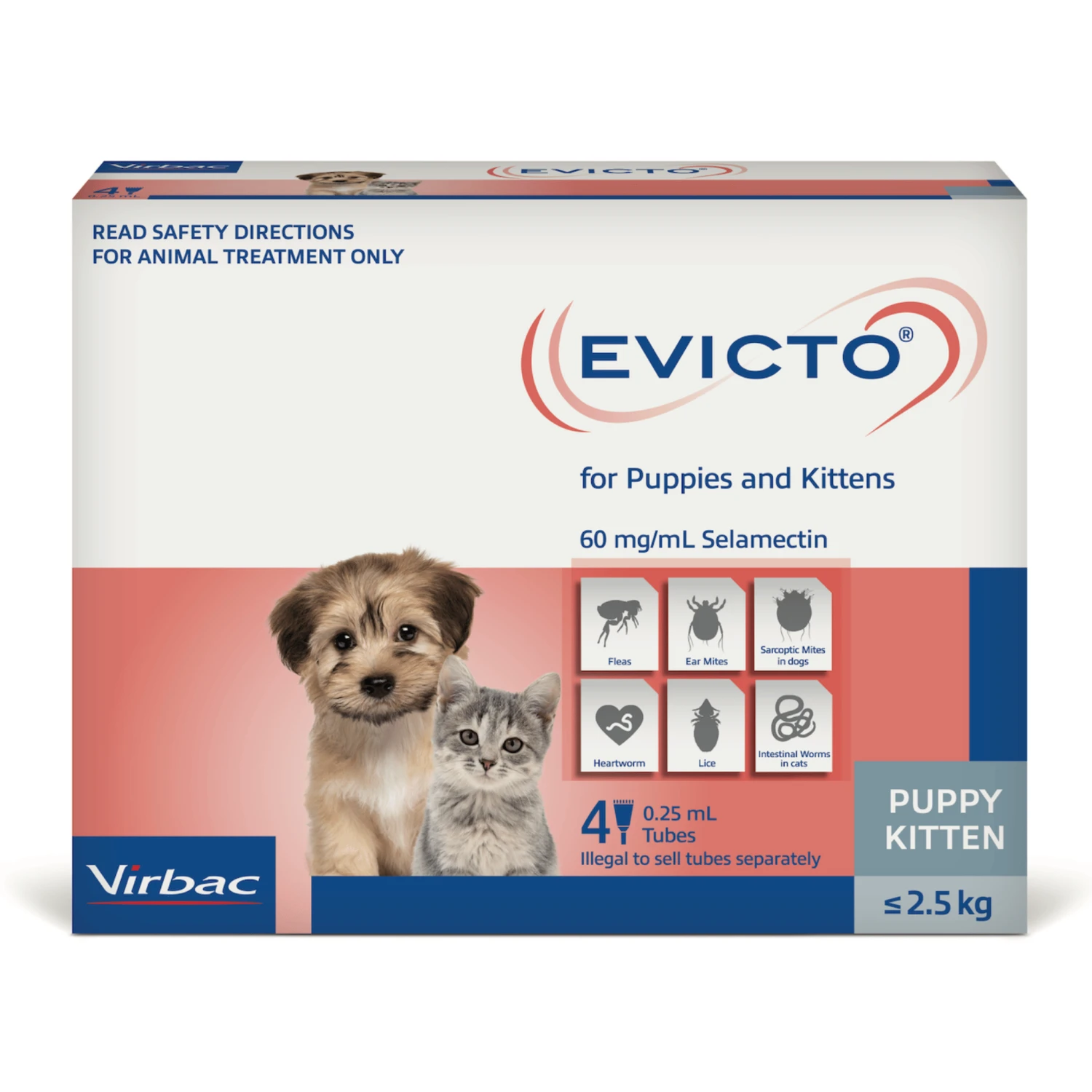 Evicto® Spot-On offers trusted, targeted protection against fleas and worms, including ovicidal activity. As a reliable alternative to selamectin, this topical solution is safe for use in puppies and kittens from 6 weeks of age.