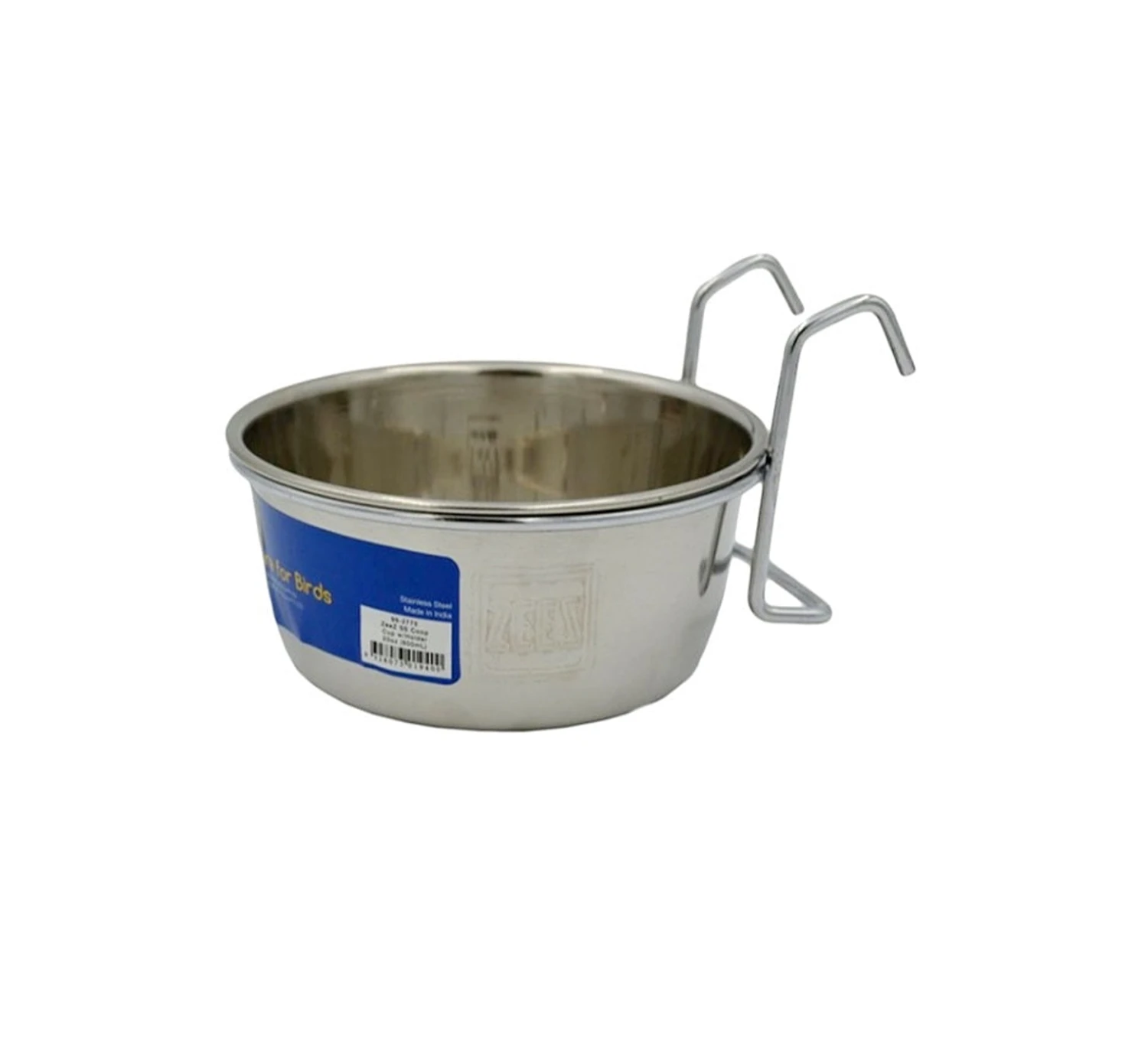 These Stainless Steel Coop Cups are designed to stay in the holder better than regular Coop Cups, with small dimple that clips the cup into the ring holder. Dishwasher-safe metal bowl to hold water or bird food.