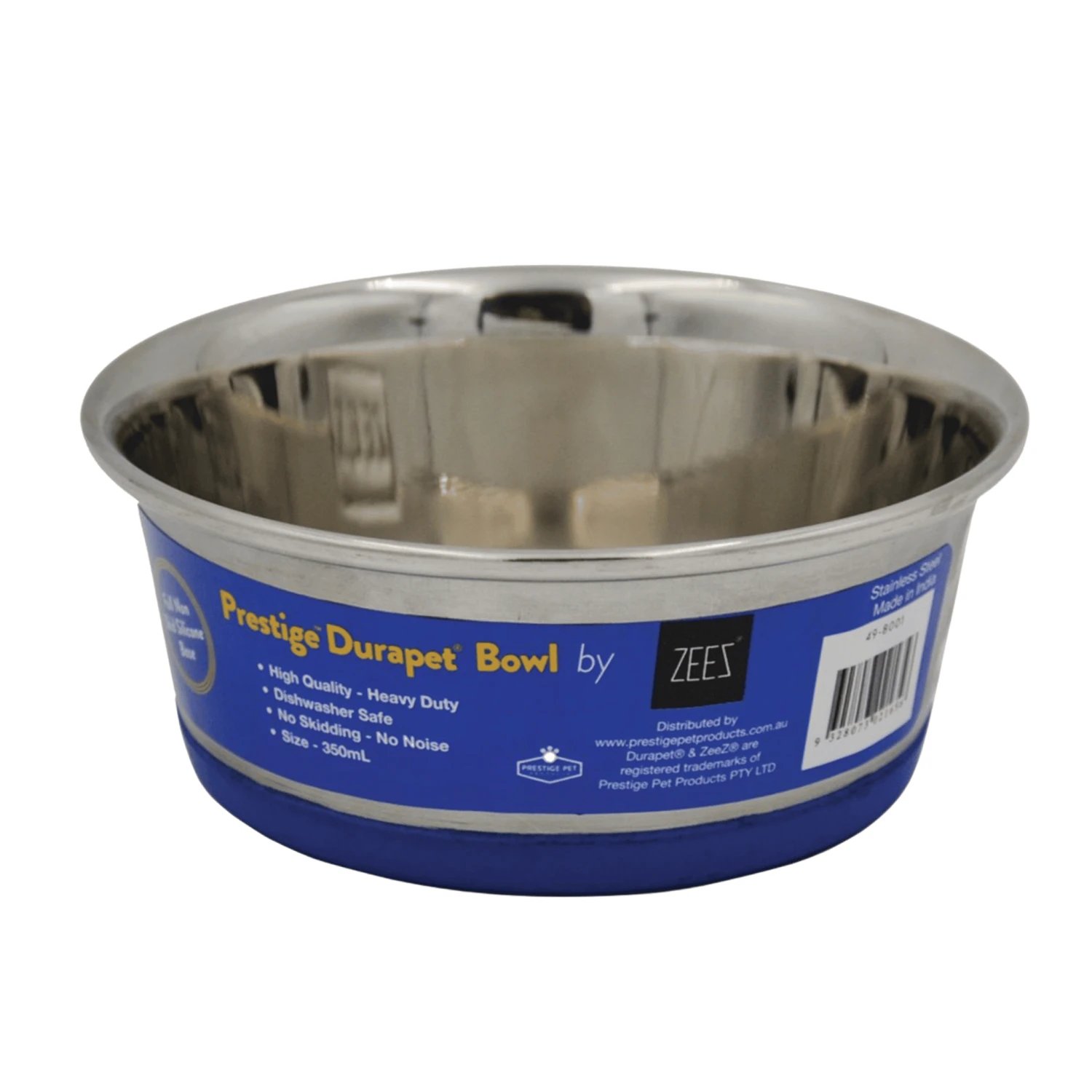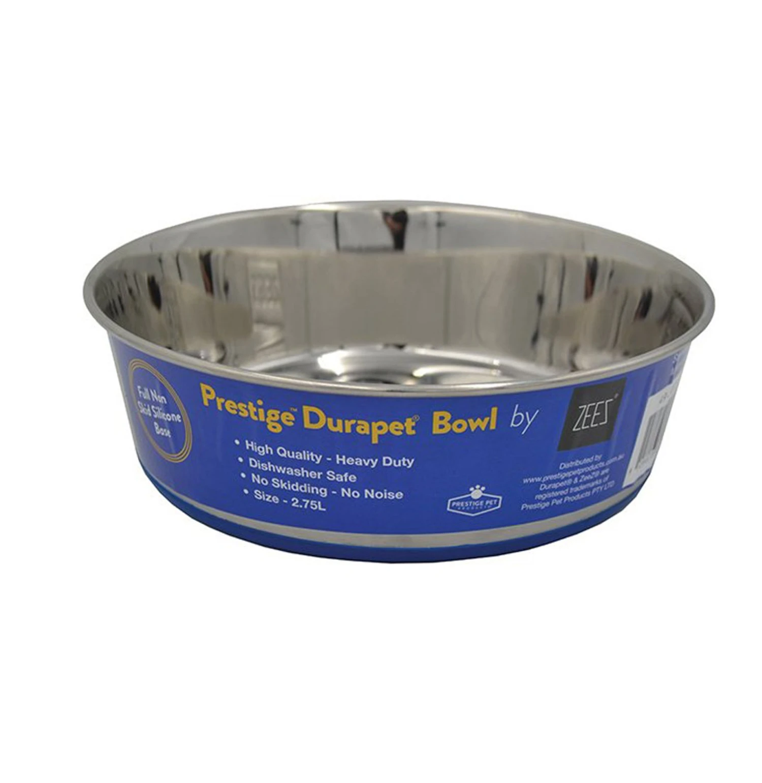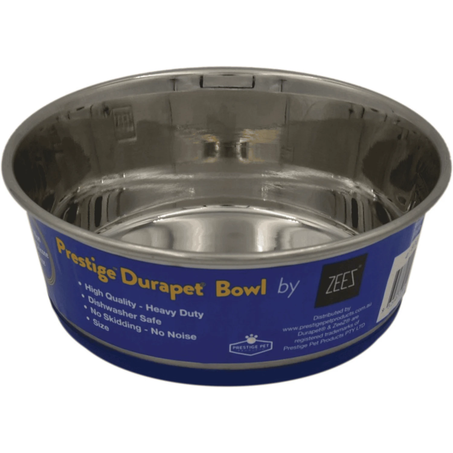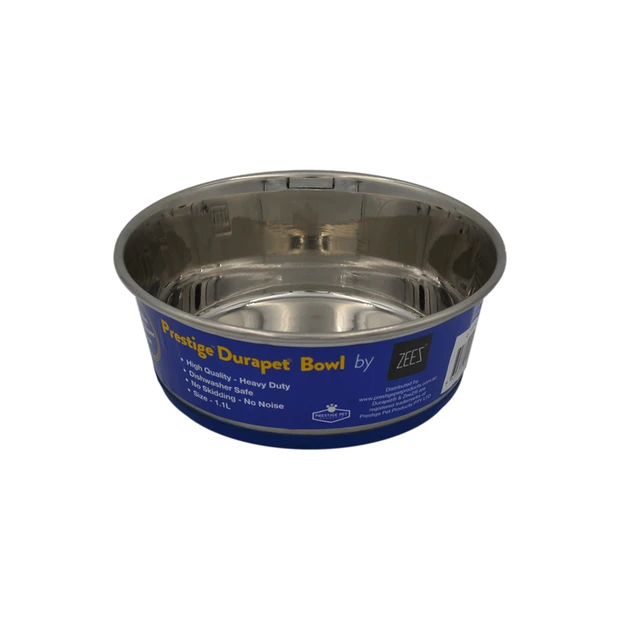 The quality, heavy gauge stainless steel makes DuraPet Premium Stainless Steel Pet Bowls extremely durable and hygienic, while the weight lends more stability. The unique fused vinyl base offers multiple advantages, including skid resistance, ensuring the bowl does not slide while the pet is eating.