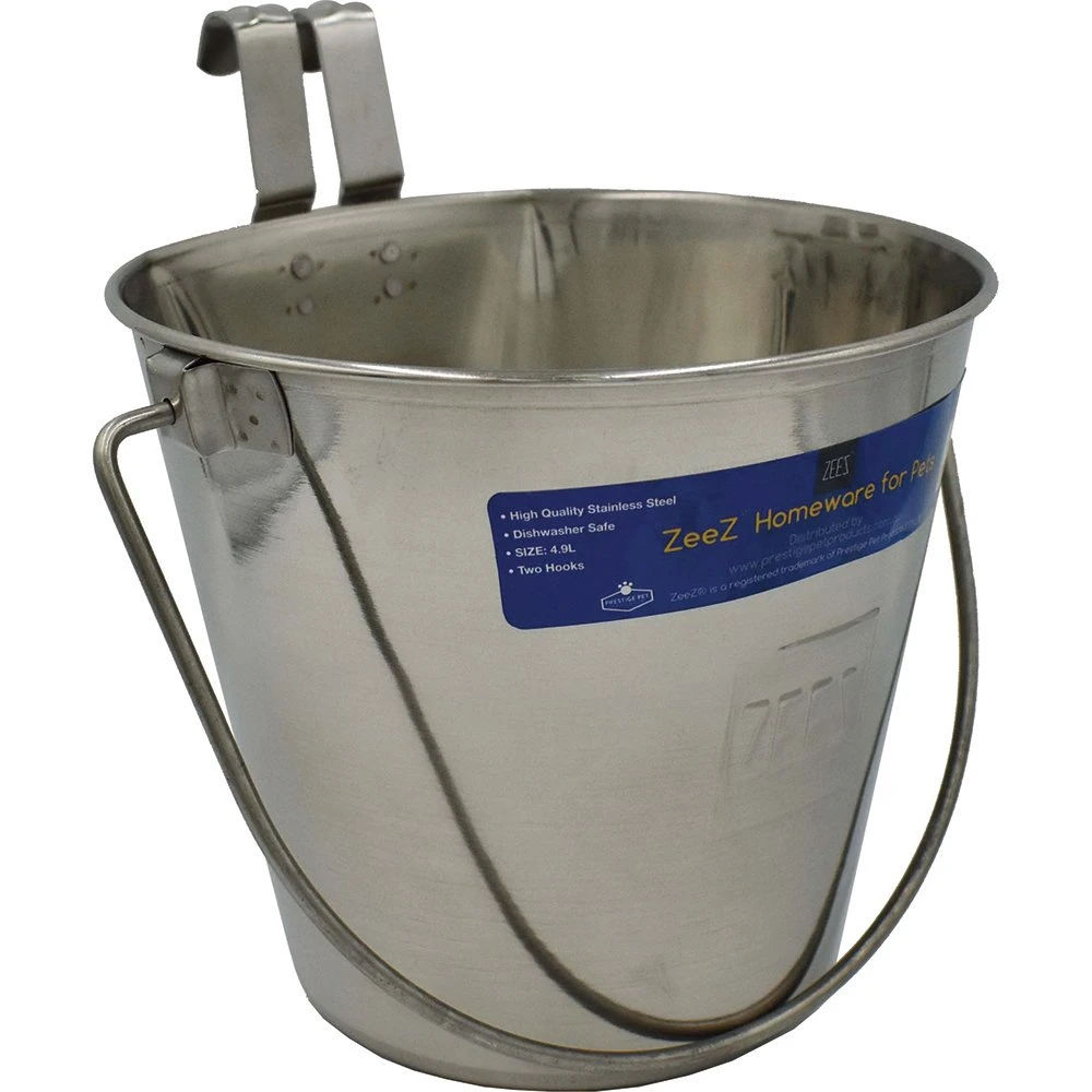 The use of stainless steel in kennels and around the home for pets has many benefits, namely hygiene, ease of cleaning and durability. The Flat Sided Stainless Steel Bucket attached with two hooks has proven to be suitable for a multiple range of uses.